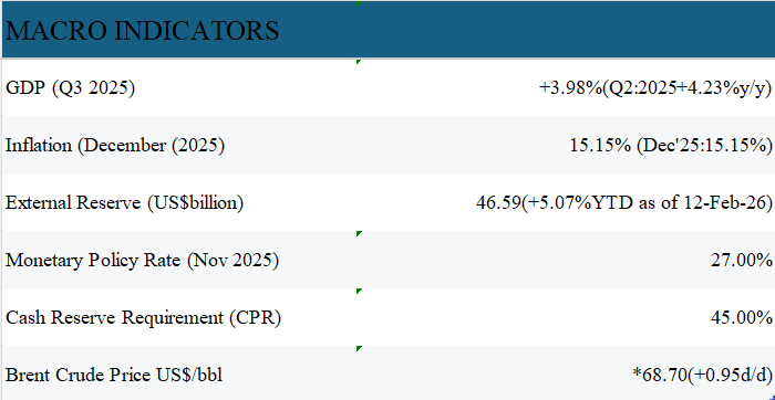 However, mild buying interest emerged at the longer end of the curve, where the February 2027 maturity recorded a 16 basis point (bp) decline in yield to close at 15.86%, reflecting selective investor demand. As a result, the average benchmark rate moderated slightly by 1bp to settle at 16.10%.