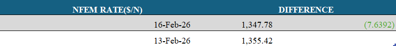 Meanwhile, external reserves strengthened, rising by $135.76 million day-on-day to $47.81 billion as of 12 February 2026.