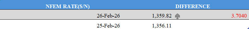 Meanwhile, Nigeria’s external reserves rose to $49.51 billion as of 25-Feb-2026, representing a day-on-day increase of $115.96 million, suggesting continued FX inflows despite spot market pressure.