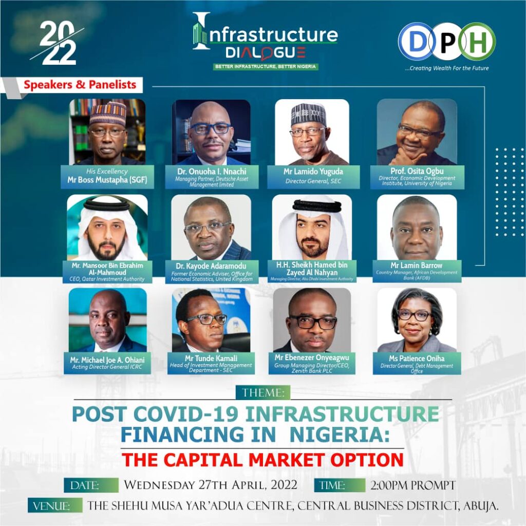 Deutsche Partners Holding with the special consent of the securities and exchange commission Nigeria under the platform infra dialogue is holding a dialogue termed ” Post covid-19 infrastructure dialogue” where it will hold intellectual and practical discourse about the infrastructure status in Nigeria, its deficit, investment opportunities and the role the capital market plays and has to play in terms of funding and investment in infrastructure in Nigeria.